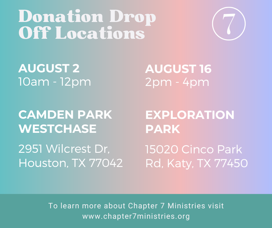The CH7M team, COTK, and Katy Responds thank you in advance for your generosity. We hope to you at one of our drop off locations!